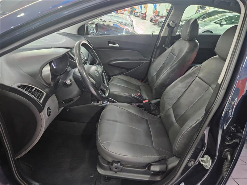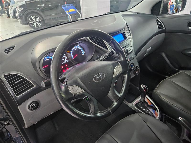 O Hyundai HB20 Premium 1.6 Flex AT 2014 é um hatch compacto premium equipado com motor 1.6 16V Gamma, entregando até 128 cv (E) / 122 cv (G) e 16,5 kgfm de torque, acoplado a um câmbio automático de 4 marchas. Destaca-se pelo bom desempenho, itens de série como ar-condicionado, direção hidráulica e rodas aro 15, sendo uma opção confiável e ágil. Principais Especificações Técnicas (HB20 Premium 1.6 AT 2014): Motor: 1.6 Gamma Flex (16V) com comando de admissão variável. Potência: 128 cv (Etanol) / 122 cv (Gasolina) a 6000 rpm. Torque: 16,5 kgfm (Etanol) / 16 kgfm (Gasolina) a 5000 rpm. Transmissão: Automática de 4 velocidades. Aceleração 0-100 km/h: ~9,3 a 11 segundos. Velocidade Máxima: ~176 - 190 km/h. Peso: 1000 kg - 1057 kg. Consumo (estimado): Cerca de 7,1 - 7,8 km/l na cidade e 9,3 km/l na estrada (Etanol). Direção: Hidráulica. Suspensão: Independente McPherson (dianteira) e Eixo de torção (traseira). Freios: Discos ventilados (dianteira) e tambor (traseira). Rodas/Pneus: Liga leve aro 15, pneus 185/60 R15. Porta-malas: 300 Litros (Hatch). Equipamentos de Série (Versão Premium): Segurança: Freios ABS, airbag duplo, alarme perimétrico e volumétrico, faróis de neblina. Conforto/Conveniência: Ar-condicionado, direção hidráulica, vidros elétricos nas 4 portas, retrovisores elétricos, volante multifuncional com ajuste de altura e profundidade. Interior: Acabamento diferenciado, computador de bordo, sistema de som com Bluetooth/USB, bancos traseiros bipartidos.