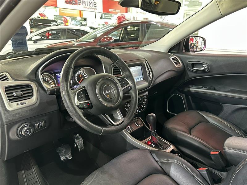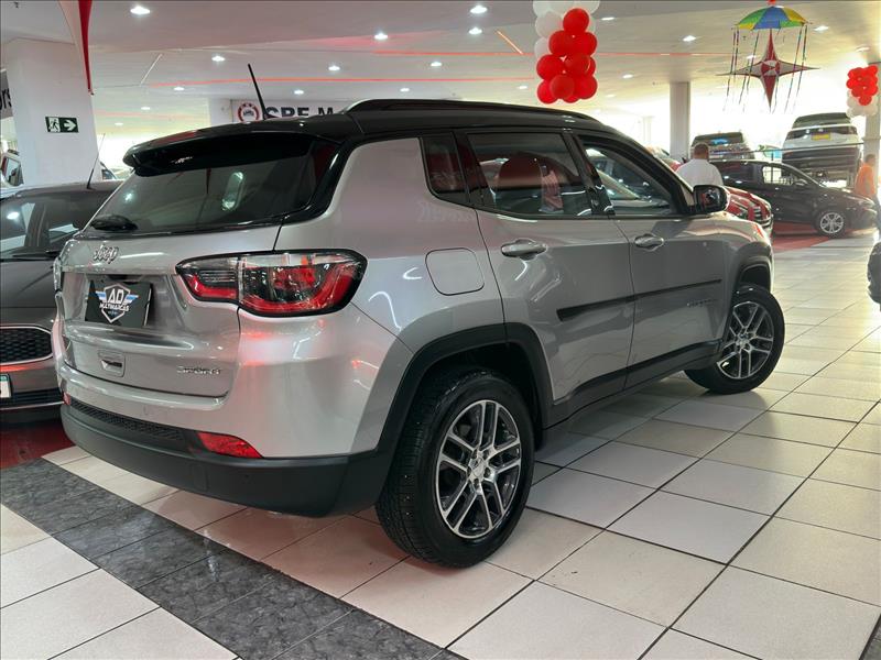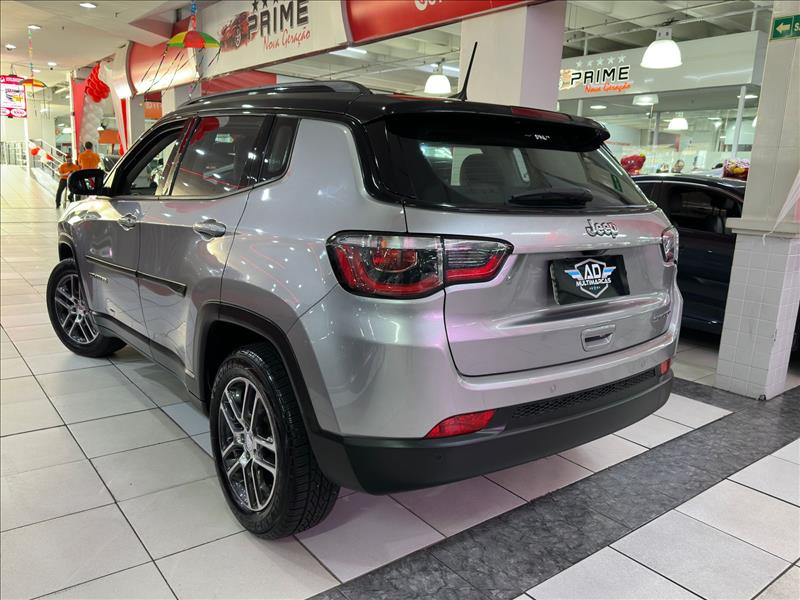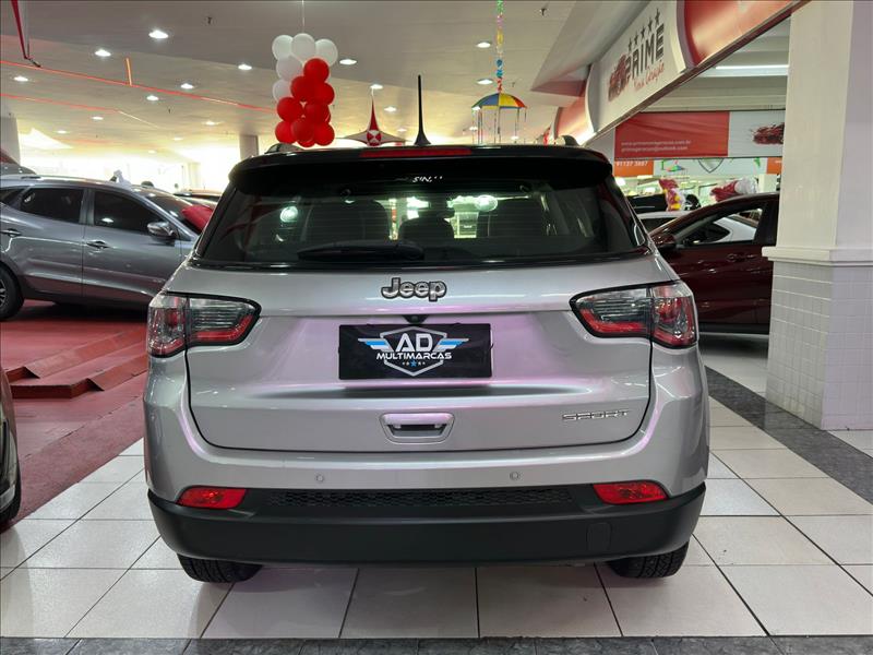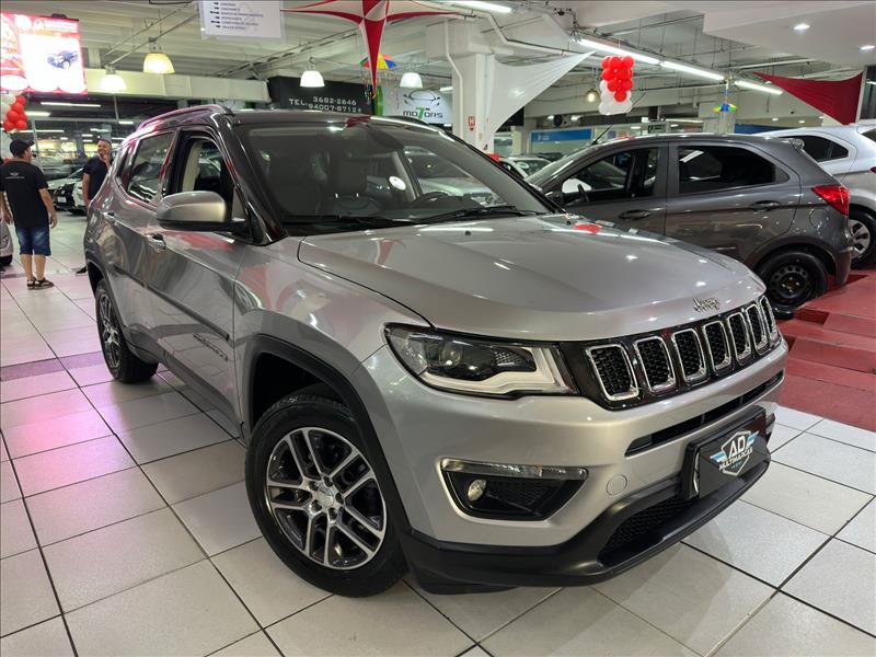 O Jeep Compass Sport 2019 2.0 Flex (4x2) é um SUV médio equipado com motor Tigershark 2.0 16V de até 166 cv (etanol), câmbio automático de 6 marchas, controle de estabilidade, 7 airbags (incluindo joelho) e central multimídia, focando em conforto e segurança. Destaca-se pelo porta-malas de 410 litros e consumo rodoviário médio de 10,8 km/l. Ficha Técnica Detalhada (Compass Sport 2019 Flex): Motor: 2.0 Tigershark Flex (16V) - 1995 cc. Potência: 166 cv (E) / 159 cv (G) a 6.200 rpm. Torque: 20,5 kgfm (E) / 19,9 kgfm (G) a 4.000 rpm. Câmbio: Automático de 6 marchas (Aisin). Tração: Dianteira (4x2). 0-100 km/h: 10,6 segundos (E). Velocidade Máxima: 192 km/h. Consumo (estimado): Urbano 6-8 km/l (E), Estrada 9-11 km/l (E). Porta-malas: 410 Litros. Tanque: 60 Litros. Dimensões: 4416 mm (comprimento), 1819 mm (largura), 1635 mm (altura), 2636 mm (entre-eixos). Peso: 1527 kg. Freios: Discos ventilados (dianteiros) e sólidos (traseiros).