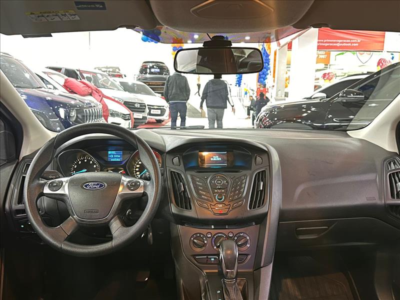 O Ford Focus Sedan 2.0 2014 automático (Powershift) destaca-se pelo motor Duratec 2.0 Direct Flex de 178 cv (E) / 175 cv (G) e alto desempenho, com 0-100 km/h em cerca de 9,2 a 9,7 segundos. Oferece câmbio automatizado de 6 marchas, suspensão traseira multilink e direção elétrica. O porta-malas tem capacidade de 421 litros Ficha Técnica Resumida (Ford Focus Sedan 2.0 2014 AT): Motor: 2.0L Flex VVT (4 cilindros em linha, 16 válvulas). Potência: 178 cv (E) / 175 cv (G) a 6.500 rpm. Torque: 22,5 kgf.m (E) / 21,5 kgf.m (G) a 4.500 rpm. Câmbio: Automático de 6 velocidades (Powershift - dupla embreagem). Direção: Elétrica. Aceleração 0-100 km/h: ~9,2 a 9,7 segundos. Velocidade Máxima: ~206 a 208 km/h. Consumo Urbano: ~6,5 km/l (E) / 9,9 km/l (G). Consumo Rodoviário: ~8,0 a 8,6 km/l (E) / 13,0 km/l (G). Porta-malas: 421 Litros. Pneus/Rodas: 205/55 R16 (SE) ou 215/50 R17 (Titanium).