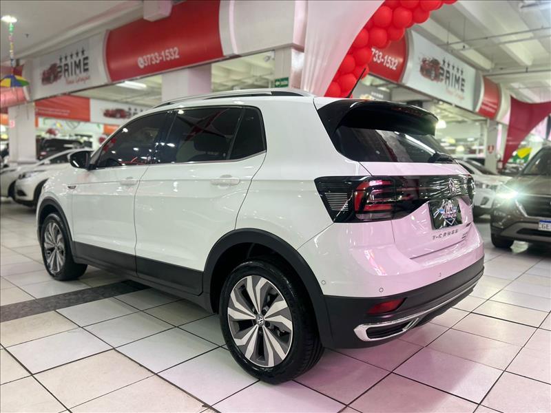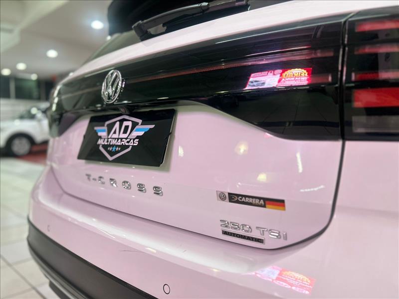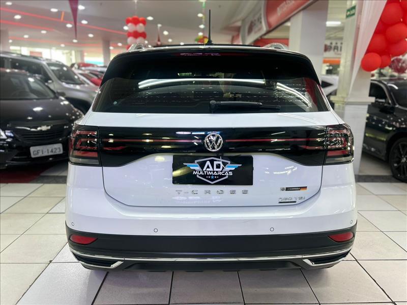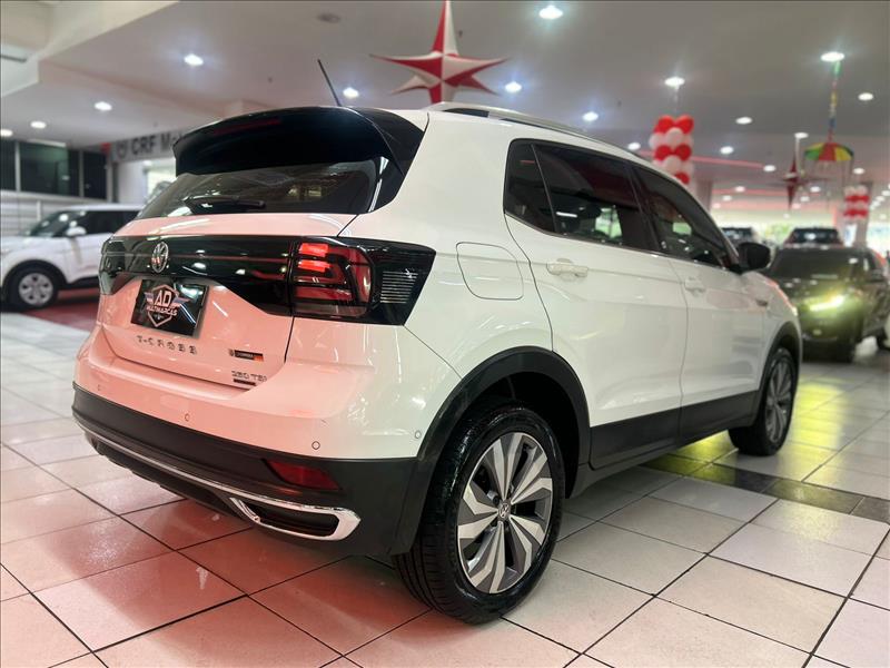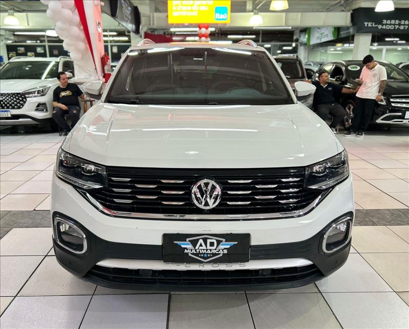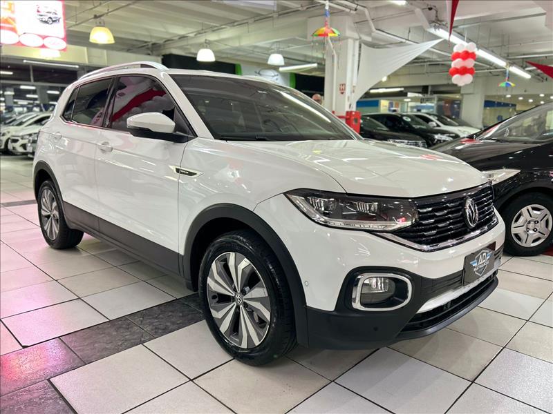 O Volkswagen T-Cross Highline 1.4 TSI 2020 (top de linha) com teto solar panorâmico Skyview possui motor 1.4 Turbo (250 TSI) de 150 cv e 25,5 kgfm, com câmbio automático de 6 marchas. Foca em desempenho (0-100 km/h em 8,7s) e conforto, com opções como som Beats, painel digital (Active Info Display) e Park Assist. Ficha Técnica Principal (T-Cross Highline 1.4 TSI 2020) Motor: 1.4 TSI 250 Turbo Flex (4 cilindros, 16V, injeção direta) Potência: 150 cv (Etanol/Gasolina) a 4.500-6000 rpm Torque: 25,5 kgfm (Etanol/Gasolina) a 1.500 rpm Câmbio: Automático 6 marchas (Tiptronic / Aisin) 0 a 100 km/h: 8,7 segundos Velocidade Máxima: 198 km/h Consumo Médio (Gasolina): Aprox. 11,0 km/l (Cidade) / 14,3 km/l (Estrada) Peso: 1.292 kg Dimensões e Capacidades Comprimento: 4.199 mm Entre-eixos: 2.651 mm Porta-malas: 373 litros (pode chegar a 420l com ajuste do banco) Tanque: 52 litros Destaques de Equipamentos (Highline + Teto) Teto Solar Panorâmico Skyview: Opcional de destaque Segurança: 6 airbags (frontais, laterais, cortina), Controle de Estabilidade (ESC), Bloqueio Eletrônico do Diferencial, Detector de Fadiga Tecnologia/Conforto: Ar-condicionado Digital Climatronic, Painel Digital (Active Info Display), Chave presencial (Keyless) com botão Start/Stop, Faróis Full LED com DRL, Rodas de liga leve 17"