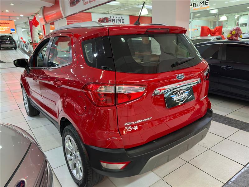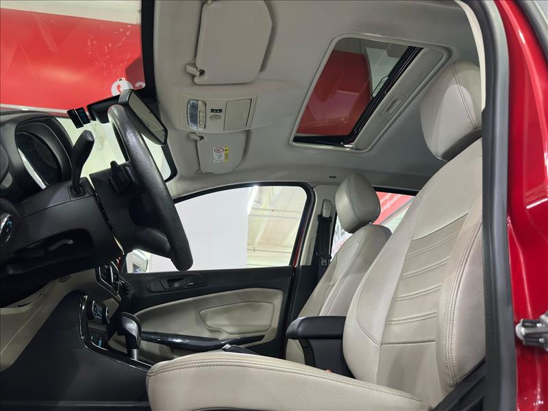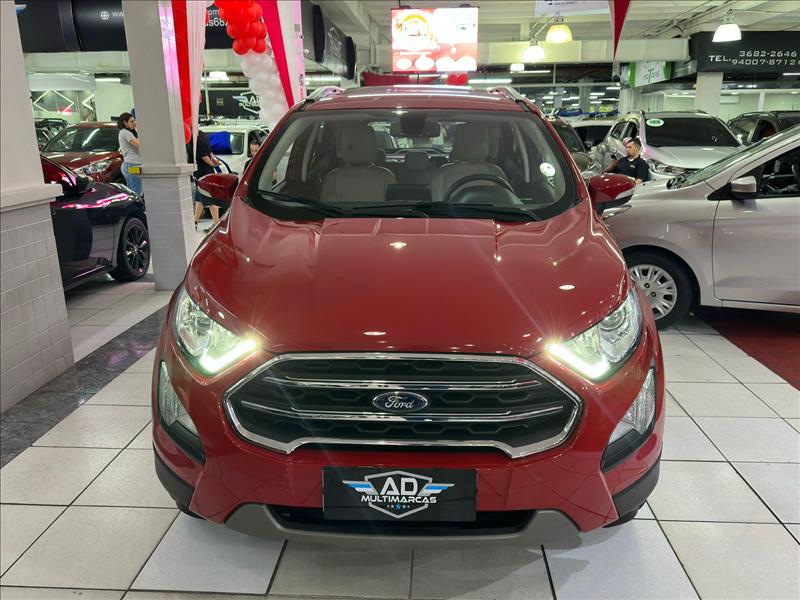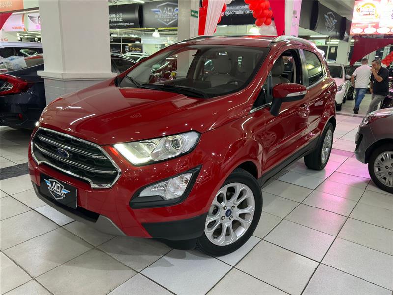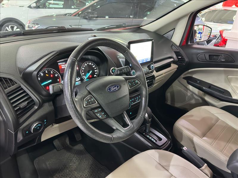 A Ford EcoSport Titanium 2020 1.5 AT é um SUV compacto equipado com motor 1.5 Dragon de 3 cilindros (137 cv etanol/130 cv gasolina) e câmbio automático de 6 marchas. Destaque para o acabamento refinado, teto solar, rodas aro 17, 6 airbags e ausência de estepe na tampa traseira (rodas Run Flat), focando em sofisticação e conforto. Ficha Técnica Principal - Ecosport Titanium 1.5 2020 Motor: 1.5L Flex Ti-VCT (3 cilindros) Potência: 137 cv (E) / 130 cv (G) a 6500 rpm Torque: 16,2 kgfm (E) / 15,6 kgfm (G) a 4500 rpm Câmbio: Automático de 6 marchas (conversor de torque) 0 a 100 km/h: ~11,8 segundos Velocidade Máxima: 180 km/h Consumo Urbano: ~7 km/l (E) / 10-11 km/l (G) Consumo Estrada: ~8 km/l (E) / 12-14 km/l (G) Porta-malas: 356 Litros Rodas/Pneus: Liga leve aro 17" com pneus Run Flat Principais Itens de Série (Titanium): Segurança: 6 Airbags (frontais, laterais, cortina), Controle de Estabilidade (ESC) e Tração (TCS), Assistente de Partida em Rampa (HLA), Sensor de Ponto Cego e Tráfego Cruzado. Conforto/Tecnologia: Teto solar elétrico, Central Multimídia SYNC 3 com tela de 8", Android Auto/Apple CarPlay, Ar-condicionado automático digital, Bancos em couro. Diferenciais da Linha 2020: A versão Titanium 2020 substituiu o motor 2.0 pelo 1.5, focando em economia sem perder acabamento premium. Esta versão eliminou o estepe na tampa traseira, utilizando pneus que rodam vazios (run flat)